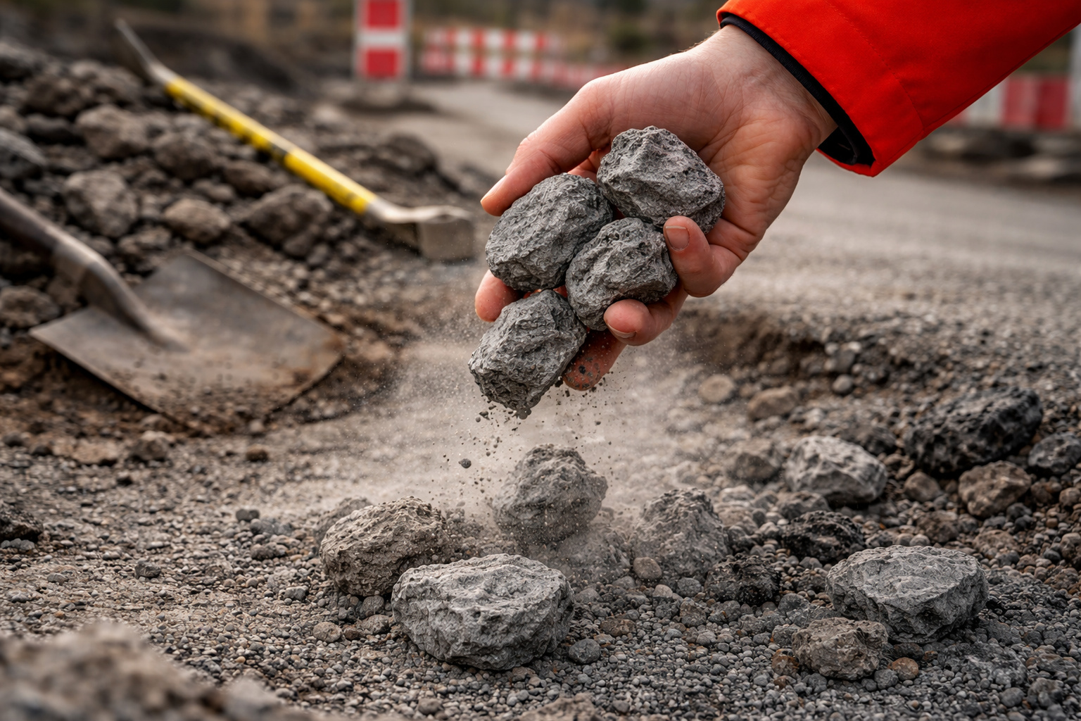 Staalslakken worden onder meer gebruikt als funderingsmateriaal onder wegen, met grote risico's. Beeld: Edese Vos (AI).