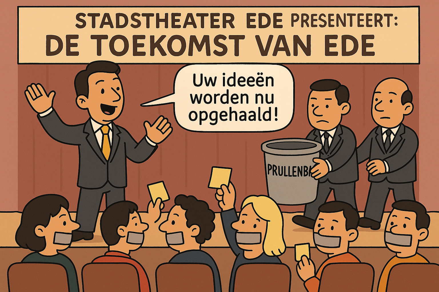 Vanavond, woensdag 3 september, organiseert de gemeente opnieuw een zogeheten ‘stadsgesprek’ over de toekomst van Ede-Stad. Eerder onderzoek van de Edese Vos toonde aan dat het ‘participeren’ vooral neerkomt op het presenteren van beleid. Wethouder Jan Pieter van der Schans weigert een gesprek over de kritische conclusies van dat onderzoek.