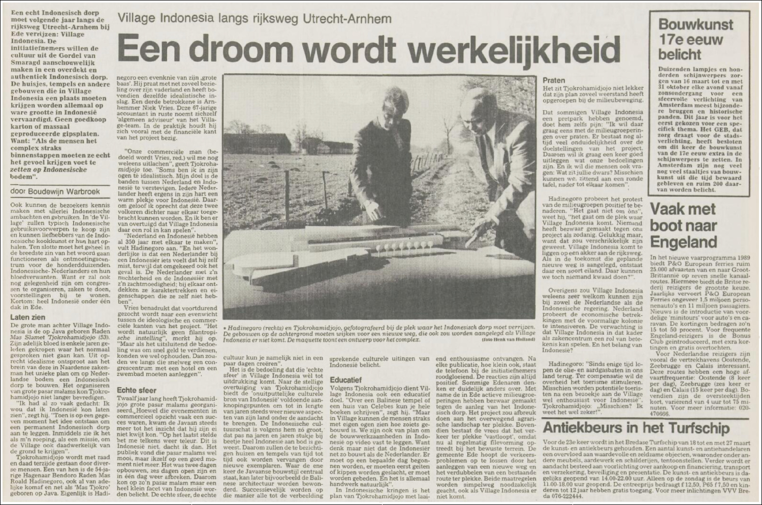Met die woorden werd eind jaren ’80 een plan aangekondigd voor een terrein tussen Ede en Bennekom. Daar moest Village Indonesia verrijzen: een compleet Indonesisch dorp, met huizen, tempels en pleinen op ware grootte, gebouwd naar voorbeelden uit Java en Bali.
