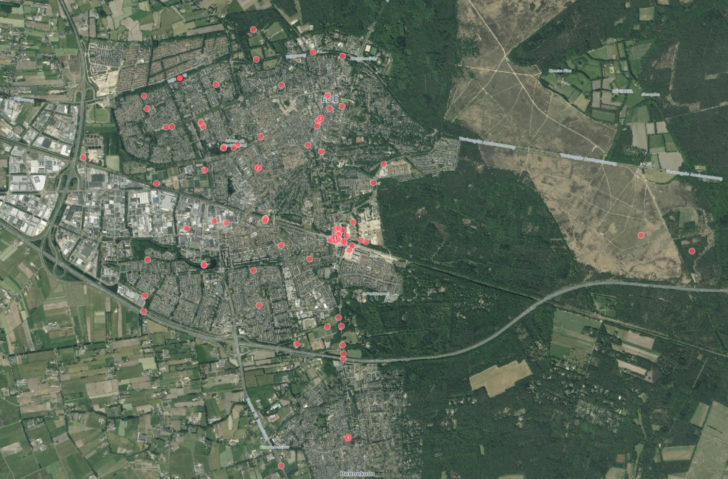 Inwoners van Ede hebben op de kaart van Pointer meer dan zeventig plekken gemarkeerd waar zij zich onveilig voelen. Veel meldingen komen uit de buurt van het station Ede-Wageningen, maar ook elders in de gemeente zijn vergelijkbare plekken aangewezen.